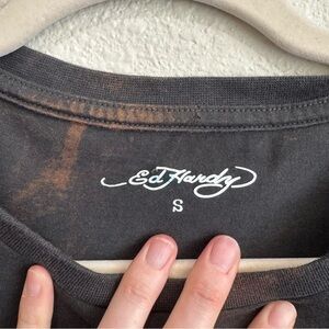 Y2K ED HARDY Womens Small Exploding Skull Graphic Tshirt Bleach Gothic Grunge