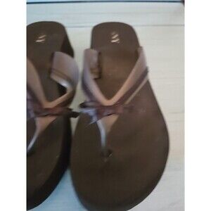 Y2K ESNY Black Wedge Flip Flops Plastic Straps Satin Bow Women's Size 9.5 Sandal