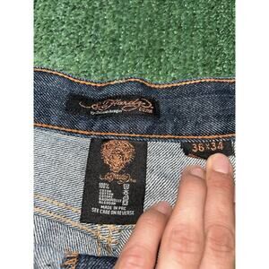 Y2K Ed Hardy x Christian Audigier Skull/Flower Denim Baggy Jeans Men's 36x33