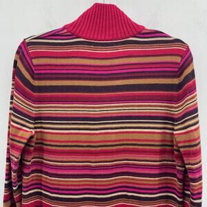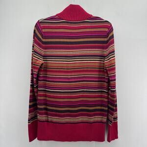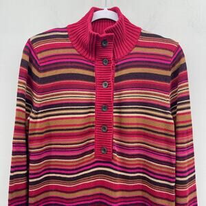 Y2K Eddie Bauer Henley Button Sweater Womens Large Red Brown Pink Stripe Ribbed