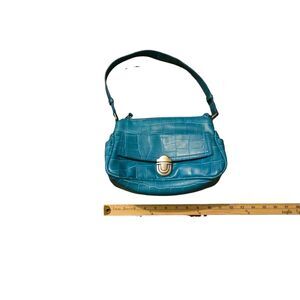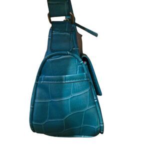 This vintage Elka Handbags Inc shoulder bag is the perfect addition to your 90s-inspired wardrobe. Made with high-quality faux leather, this bag boasts a chic and stylish exterior color of summer blue that is sure to turn heads. The bag features a unique vegan faux crocodile pattern that adds a touch of sophistication to any outfit.