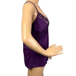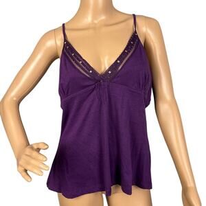 Y2K Ellemenno Women's Babydoll Top Purple Sheer Detail Beading XL NWT Deadstock
