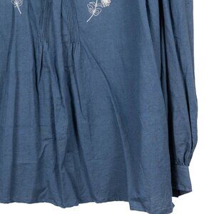 Y2K Embroidered Tunic Blouse M Linen Floral Pleated Button 90s Boho Layering Top