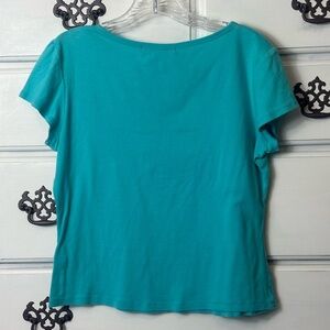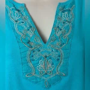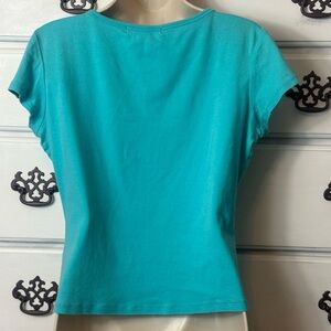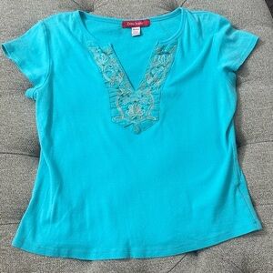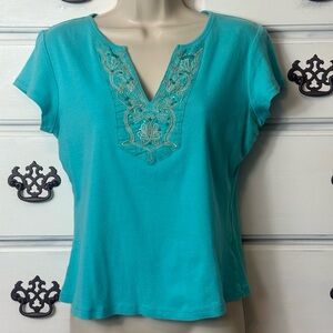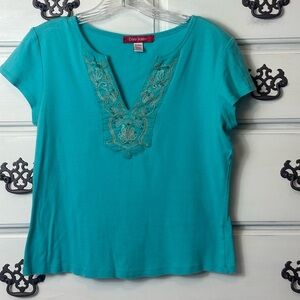 Y2K Embroidered/Sequin Tee. Stylish teal women's top with elegant embroidery and sequins. Perfect for casual outings. Excellent used condition.