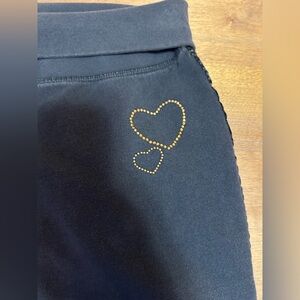 Faded blue sweats with roll over waistband. Heart logo on front and beautiful written on back waistband