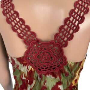 Y2K Esprit Boho Ikat Print Mini Dress Earthy Indie Sleaze Crochet Ruffle Hem 4
