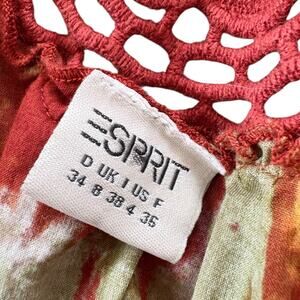 Y2K Esprit Boho Ikat Print Mini Dress Earthy Indie Sleaze Crochet Ruffle Hem 2 EU 34