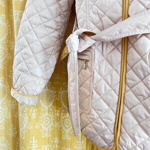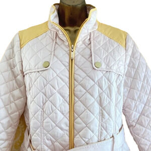 Y2K Esprit Quilted Cream and Yellow Belted Jacket with ZIPPERED POCKETS
