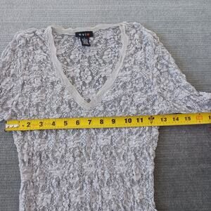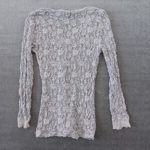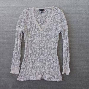 Y2K Evie S Gray Sheer Lace Floral Long Sleeve Casual Boho Whimsy V Neck Sheer