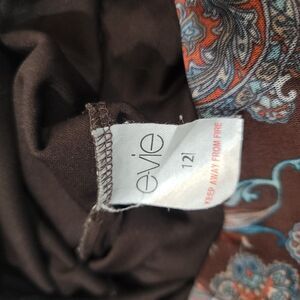 The Y2K Evie Women's Knee Length Skirt in size 12 is a vintage-inspired piece perfect for those embracing the fairy or goblincore styles. With a paisley pattern and a brown color, this skirt features an elastic waistband for comfort and a pull-on closure for ease. Made from polyester and nylon, this lightweight skirt is ideal for travel or casual occasions, adding a touch of bohemian flair to any outfit. Its knee-length design and tulip style make it a versatile piece that can be worn at various festivals or gatherings.