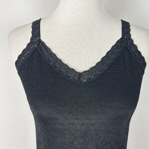 Y2K Express Black Stretch Knit Lace Tank Top Nylon Vamp Dark Size M/L Women's