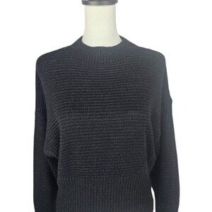 Express Black Sweater Cropped Length Mock Neck Subtle Silver Sparkle