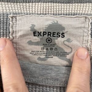 Y2K Express Gray Striped Long Sleeve Waffle Knit Thermal Shirt Mens Size M 90's