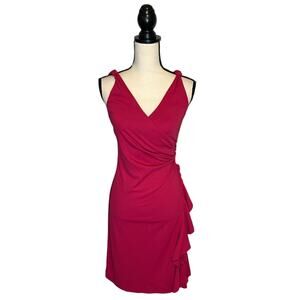 Y2K Express Pink Ruffle Faux Wrap Dress Sleeveless V Neck Midi Womens Size 1/2