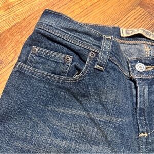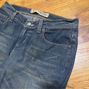 Express Precision Fit “Sarula” low rise flares. Authentic Y2K wash denim with brown whiskering. Classic 5-pocket style, zip fly, button closure, belt loops.