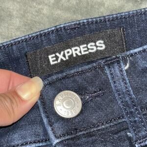 Express Shortie Relaxed Low Rise Denim Shorts Women's 00 Blue Striped Pockets.