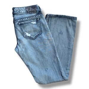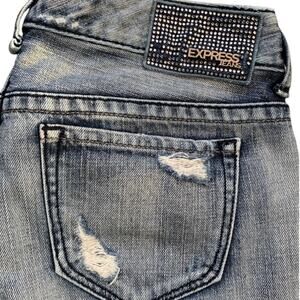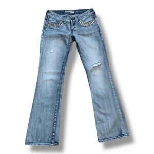 Y2K Express Stella Boot Cut Low Rise Studded Distressed Blue Jeans Medium Wash