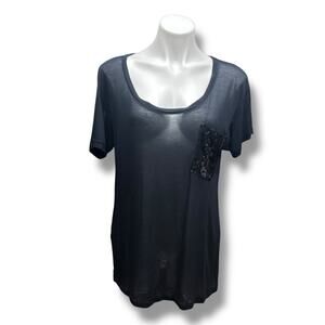 Y2K Express T Shirts 2 Sheer Embellished Pockets Black White Studded Sequins M