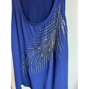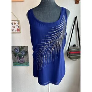 Y2K- Express Tank Top- long- Feather Gemstone Design Sz M Navy Blue Silver