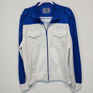 Y2K Express Track Jacket Size L Blue White Epaulettes New York Graphic 2008
