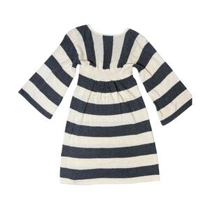 Y2K Express Wool Blend Cream + Gray Stripe Sweater Flare Sleeve Dress Size Extra Small