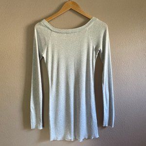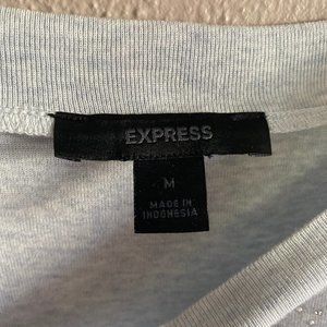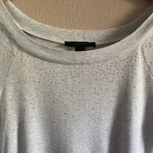Express gray long sleeved lightweight thin sweater dress/tunic/long shirt embellished with tiny, sparkly rhinestones on the chest and shoulders. Lettuce hems on bottom of sleeves and sweater (also called rolled hem). In EUC Excellent Used Condition. Like new. Size medium.