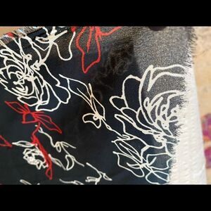Y2K Fabric sheer black red ivory floral # 0756 beautiful sheer fabric I bought to make a slip dress but never got around to it it’s been 20 years! Measurements are in the the photos.