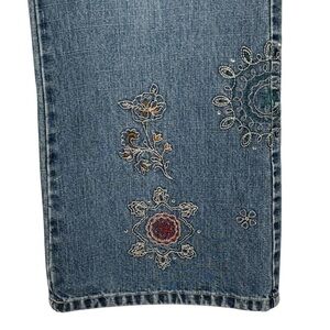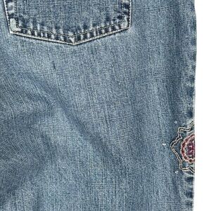 Y2K Faded Glory Embroidered Flare Jeans Womens 14P Boho Style Mid Rise Denim