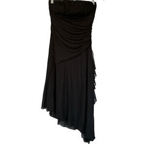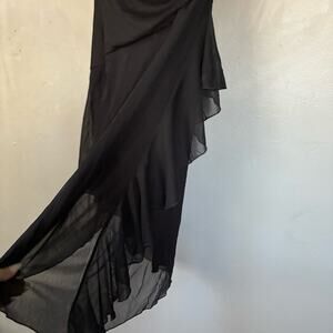Y2K Fairy Asymmetrical Hem Black Dress Whimsigoth Gothic WitchyCore Mesh layer M