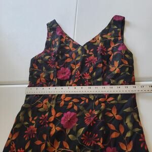 Y2K Fairy Grunge Dress Womens 10 Black Floral Linen Sleeveless V Neck Sheath