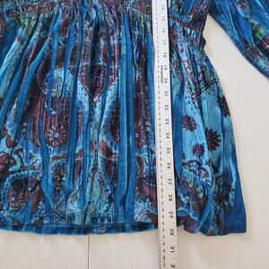 Y2K Fairy Grunge Shirt Womens 2XL Blue Paisley Velvet V Neck Tunic Stretch