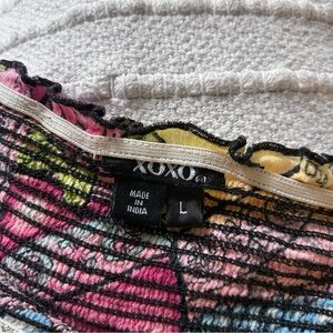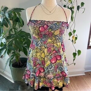 Y2K Fairy multicoloured halter top with ruffle trim.