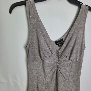 Y2K Fairy Silver Glitter Handkerchief Hem Dress Rhinestone Detail Size Medium