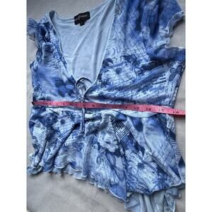 Y2K Fairycore Sz Lrg Flowy Babydoll Top Floral Lace Trim Blue Butterfly Peplum