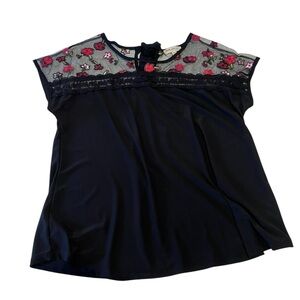 Y2K Faith & Joy Black Mesh Floral Sleeve Top Blouse whimsical goth feminine 90s