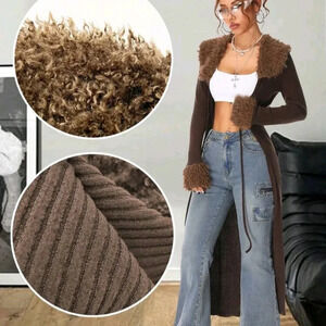 Y2K Fashion Vintage Rib Knit Flannelette Textured Lace Up Brown Long Cardigans
