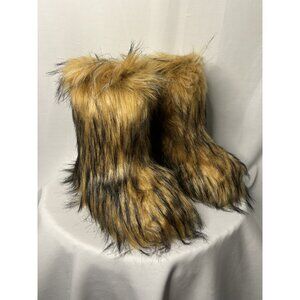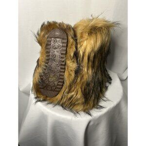 Y2K Faux Fur Boots Size 10 Brown & Black