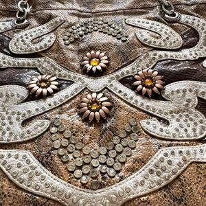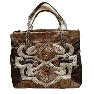 Y2K rhinestone tote, faux snakeskin western bag, 2000s glitter purse, rhinestone appliqué tote, McBling aesthetic bag, western glam tote, D&G Y2K dupe, early 2000s rhinestone handbag, faux leather chain strap purse, vintage Guess bag style, mallcore fashion accessory, festival glam bag, sexy western purse