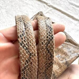 For the baddie who haunts gas stations, thrift stores, and dive bars in the same day. This vintage faux leather tote is giving peak Y2K with metallic snakeskin texture, dual chain + faux leather straps, and glittering floral appliqué with rhinestones and cutouts. Medium size with magnetic snap closure and satin gold interior with zipper pocket. Unbranded but iconic. A little outrageous, a little nostalgic — just like you.