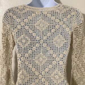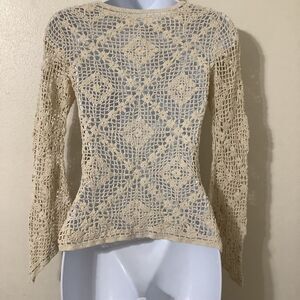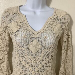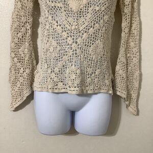Y2K Festival Bohemian Boho Hippie Fairycore Lagenlook Sheer Cream Crochet Top S