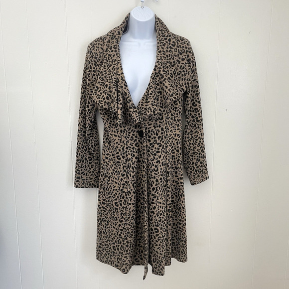Y2K Fevere Duster Cardigan S Leopard Print Ruffle Collar Bratz Boho Indie