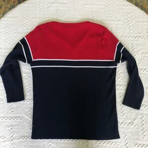 😍 Sporty ’01 Made-in-USA sweater with red and navy color block, pullover, v-necl, long sleeve