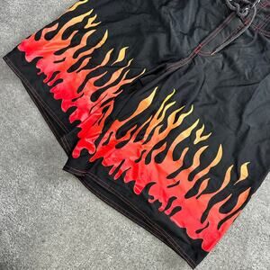 Y2K Flame Graphic Shorts Size 32 Baggy Skater Jnco Style Lightweight