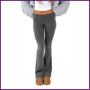 Y2K Flare Leggings Low Rise Fold Over Waist Bootcut Stretchy Yoga Pants