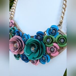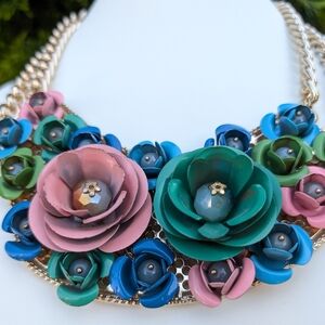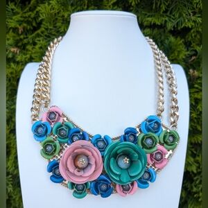 Y2K Floral Chunky Metal Double Chain Statement Bib Necklace