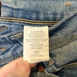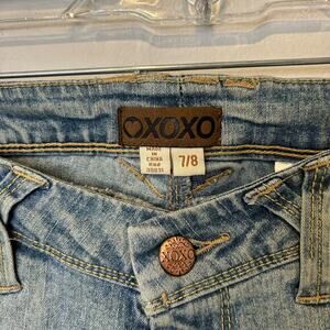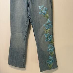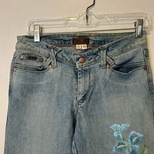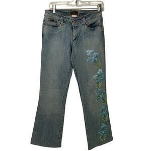 Y2K Floral Embroidered Jeans Low Waisted Flare XOXO Sz 7/8 Light Wash Pastel