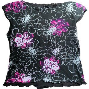 Y2K Floral Lace Trim V-Neck Blouse Top Torrid, Size 1 (14/16)