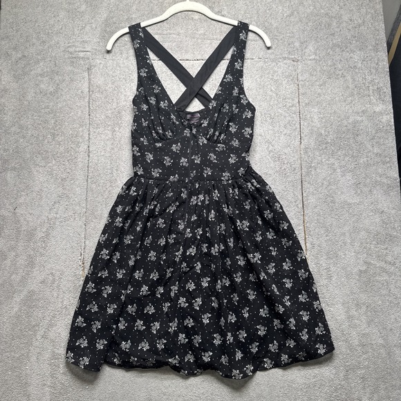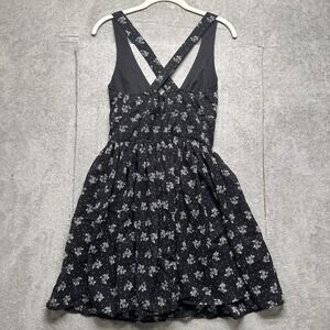 Y2K Floral Sundress Black Fit & Flare Crossback Mini Dress Small Cottagecore