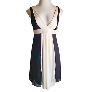 Ruby Rox Y2K Flowy Lined Dress Women's Medium Brown Cream Chiffon Satin Ribbon Wedding Guest