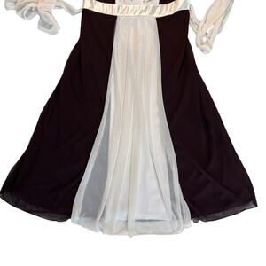 Y2K Flowy Dress Women's Medium Brown Cream Chiffon Satin Ribbon Wedding Guest